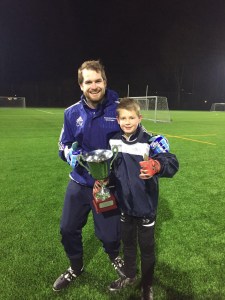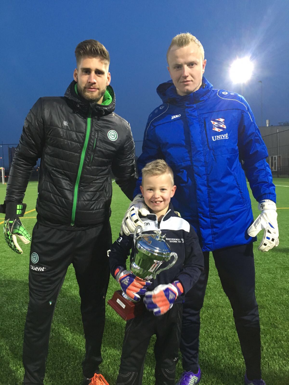 De Wisselbokaal voor de F en E keepers ging daarom naar Euan van Eerden van Velocitas. Klein van stuk, maar weet al zoveel van en over keepen dat we soms met verbijstering luisteren. Trots nam Euan de beker in ontvangst van de trainers Wieger Sietsma en Stefan van der Lei.