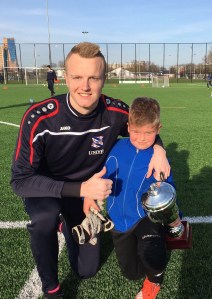 Bij de D keepers en ouder was het ook een keeper van GRC Groningen, ditmaal was het Chris Ridderstap. Chris is al sinds de start van onze trainingen in september 2014 een vervent aanhanger van keepen. Hij slaat nooit een training over en doet zijn uiterste best het maximale uit zichzelf te halen. De overgang van een E naar een D doel is niet even makkelijk. Door rustig te blijven werken aan je ontwikkelpunten en de tijd te nemen om te wennen waar je precies moet staan wordt het al en stuk eenvoudiger. Chris geeft nooit op. Ook dat is nodig om een betere keeper te worden.