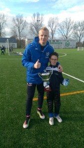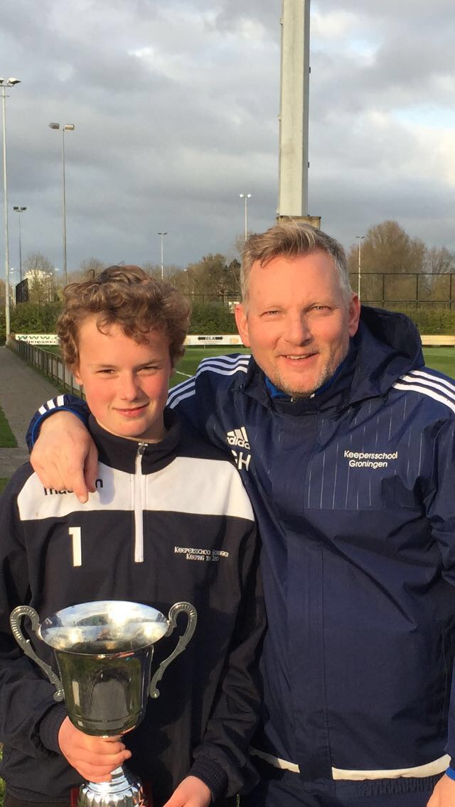 Dat laat Daan Kooistra, keeper van Zevenhuizen E2 erg goed zien. Altijd aanwezig om ten eerste plezier te maken, kort daarop gevolgd door de absolute wil om beter te worden. De Wisselbokaal voor Talentontwikkeling en Talentstimulering ging bij de F en E keepers dan ook naar Daan. Trots geflankeerd door trainer Wieger Sietsma van SC Heerenveen.