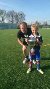 De Wisselbokaal als stimulans en beloning voor de ontwikkeling van de jeugdige keepers doet het altijd goed. Youri Bos, keeper van SJS E1, laat zien dat hij graag een betere keeper wil worden. Natuurlijk met het prachtige tenue van FC Groningen. Yoeri ging er dan ook met de Wisselbokaal vandoor.