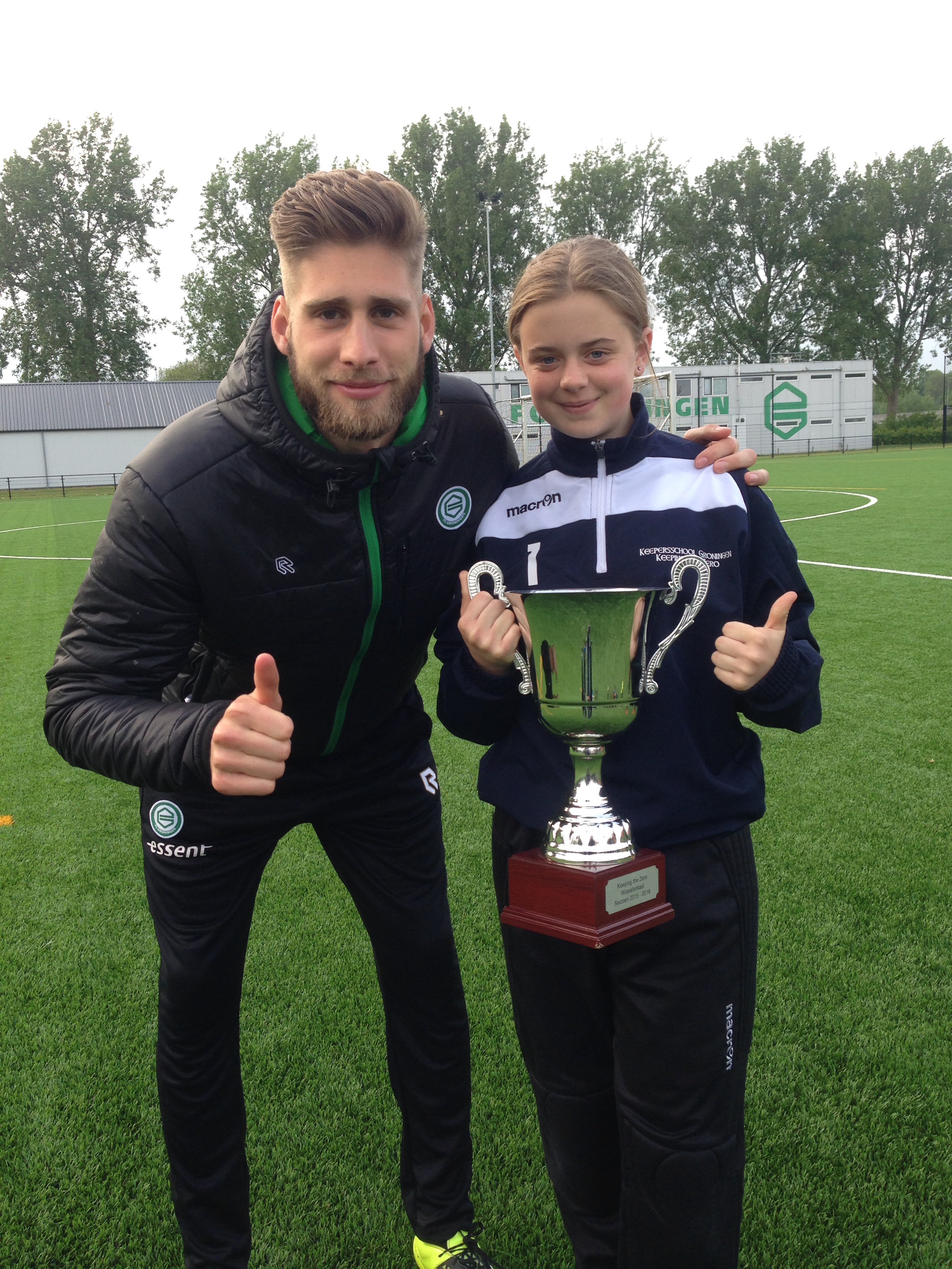 Bij de D keepers en ouder ging deze keer een keepster met de bokaal aan de haal. En dat is ook meer dan verdient. Jennifer Ruitinga is keepster van HFC 15 uit Hoogkerk en staat wekelijks haar “mannetje” tussen al die keepers. Wekelijks laat Jennifer zien dat ze stappen maakt en dat ze de drive heeft om beter te willen worden. Iedere week geeft ze 100% en ze doet absoluut niet onder voor de jongens. Voor ons als trainer is het mooi om te zien dat steeds meer meisjes besluiten keeper te worden. Inmiddels trainen er drie meisjes wekelijks tussen de jongens.