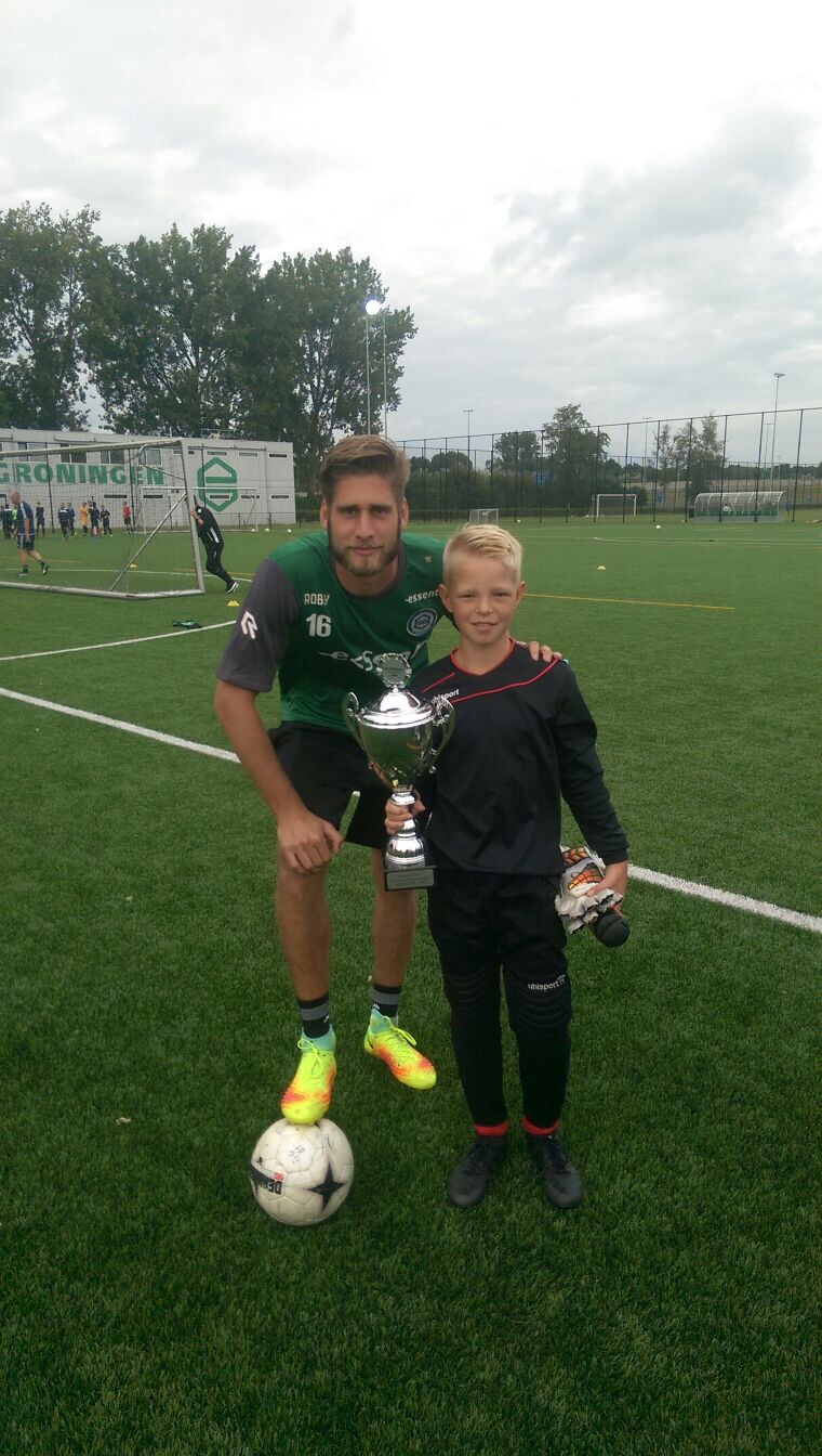 De Wisselbokaal voor Talentontwikkeling en Talentstimulering ging bij de groep tot Onder 11 naar Sven van den Berg, keeper van HFC ’15. Sven is nog niet zo heel erg lang keeper maar je kunt aan hem zien dat hij heel erg graag wil en het ook nog eens heel erg goed doet. Altijd met de juiste concentratie en focus op het veld.