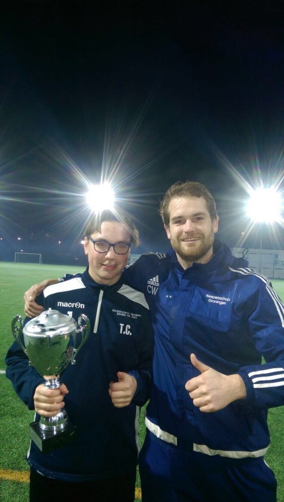 Thomas Cako, keeper van GRC Groningen begaat een zelfde weg. Nog nooit handschoenen aangehad melde hij zich aan de start van dit seizoen. Omdat hij een goede keeper wilde worden. Wilde leren. Rammelde aan de deur van ontwikkeling maar kreeg hem nog niet open, vastberaden als hij is ging hij door met zijn missie. Beter willen worden. Thomas heeft het hek inmiddels geopend, een mooi voorbeeld van onverzettelijkheid. Never give up. Voor Thomas echt een mooie waardering voor zijn inzet en drive! Gefeliciteerd jongens!