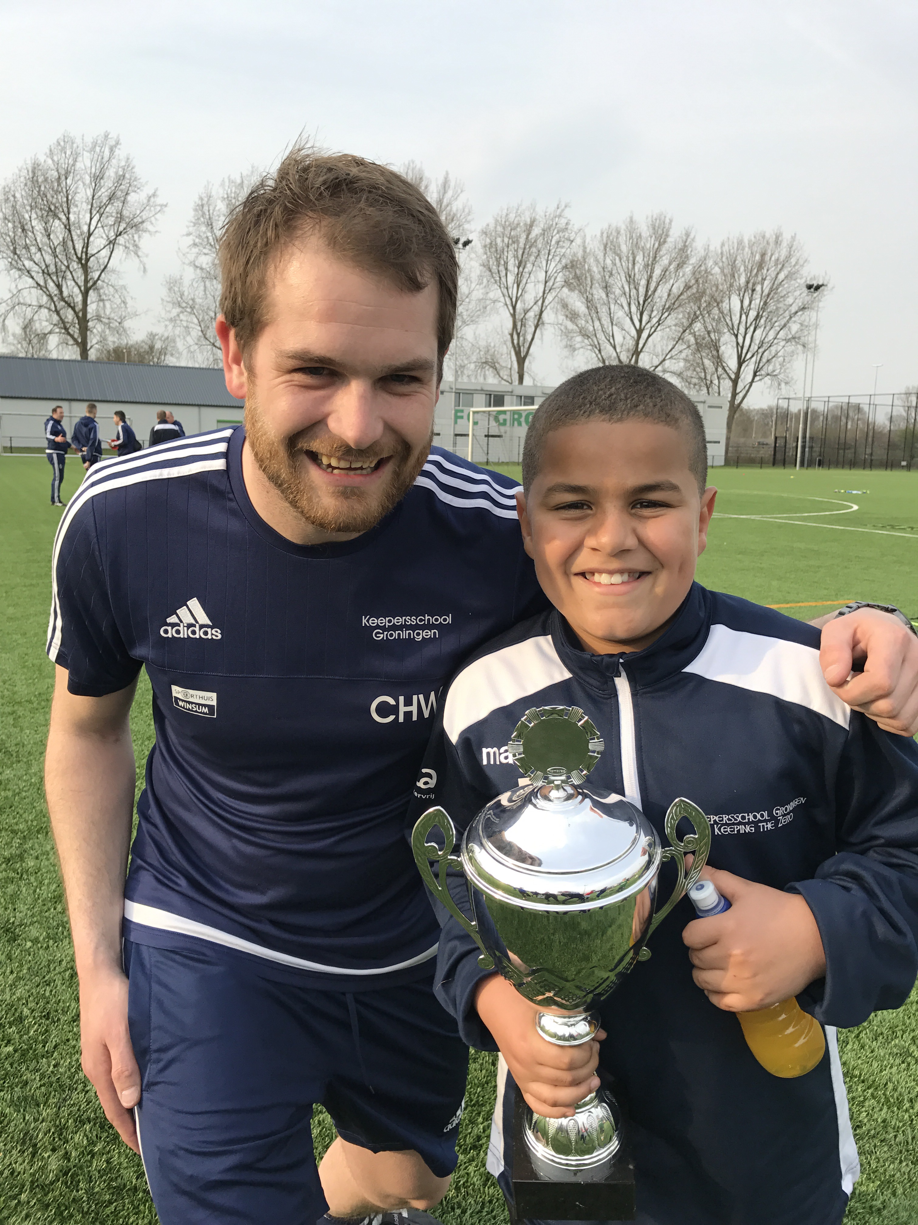 Bij groep 1 was het Roenly Boven uit Hoogezand die de wisselbeker met zijn bekende glimlach trots in ontvangst kon nemen van trainer Chris Weggemans. Roenly keept bij SC Stadspark in Groningen. Roenly is al sinds augustus 2015 wekelijk op de grasmat te vinden om zich te ontwikkelen, dat dat goed gaat kunnen we allemaal duidelijk zien. Het is oa prachtig om de zweefduiken van Roenly te zien, pakt de bal dan ook nog eens vast uit de lucht.
