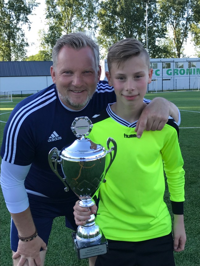 Bij de keepers die normaal op zondagochtend trainen, was het Yoran Nienhuis die de beker met een grote lach in ontvangst nam. Yoran speelt zijn wedstrijden wekelijks bij HFC 15 uit Hoogkerk en laat zien waarom hij sinds augustus 2016 tot het keepers talenten team behoort. De in 2006 geboren Yoran laat er geen gras over groeien, steeds brutaler wordend op het veld werkt hij aan zijn missie om de beste versie van zichzelf te worden. Als zijn wedstrijd is afgelopen is het vaste prik. Naar huis en huiswerk maken zodat hij en zijn trainers goed weten wat er goed ging en wat er te ontwikkelen is. Voor nu hebben we een weekje rust. De keepers staan al weer te trappelen om het nieuwe seizoen te beginnen op 9 en 11 juni a.s.