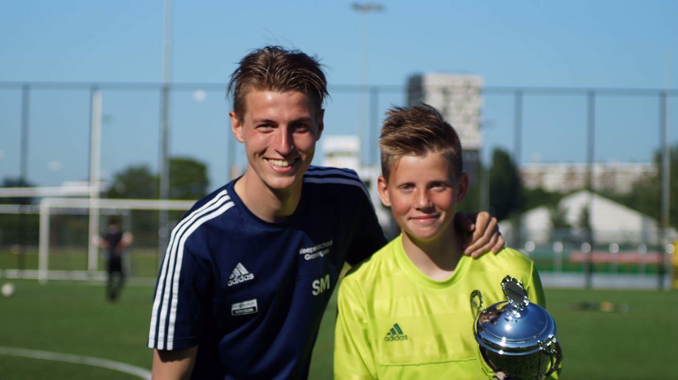 Bij groep 2 was het Troy van der Meulen die er definief met de beker vandoor ging en hem voorgoed mag houden. Troy, geboren in 2004, keept wekelijks zijn wedstrijden bij TLC uit Leek. Sinds juni 2015 is Troy wekelijks te vinden tussen de keepers die beter willen worden. Troy is zo’n keeper die intrinsiek zo gemotiveerd is dat hij geen training overslaat en goed snapt waarom hij traint. Als het even niet loopt herpakt hij zich ijskoud om zo toch weer stappen te kunnen maken in zijn ontwikkeling. “Ik ben hier om te leren” zoals Troy gister nog tijdens de training zei. En zo is het precies. Beide jongens zijn tevens uitblinkers in het maken van hun huiswerk. Een dikke 10 met een griffel.