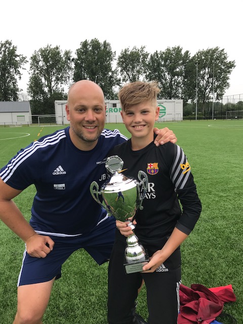De in juni 9 jaar geworden Bas Loer, keept zijn wedstrijden bij FVV uit Foxhol. Bas deed voor het eerst mee met een van onze Keepersdagen. Sinds maart van dit jaar is Bas wekelijks te vinden op de vrijdag tussen de andere talenten. Ambitie om beter te worden bezit Bas als geen ander, steevast werkt hij aan zijn doel. Beter worden. Hoe Bas beter kan worden heeft hij steeds beter door. Met de goede focus zien we hem inmiddels handelingen op het veld verrichten die hij steeds beter kan en die ook nog eens steeds sneller gaan. De wisselbeker ging dan ook verdient naar Bas Loer.