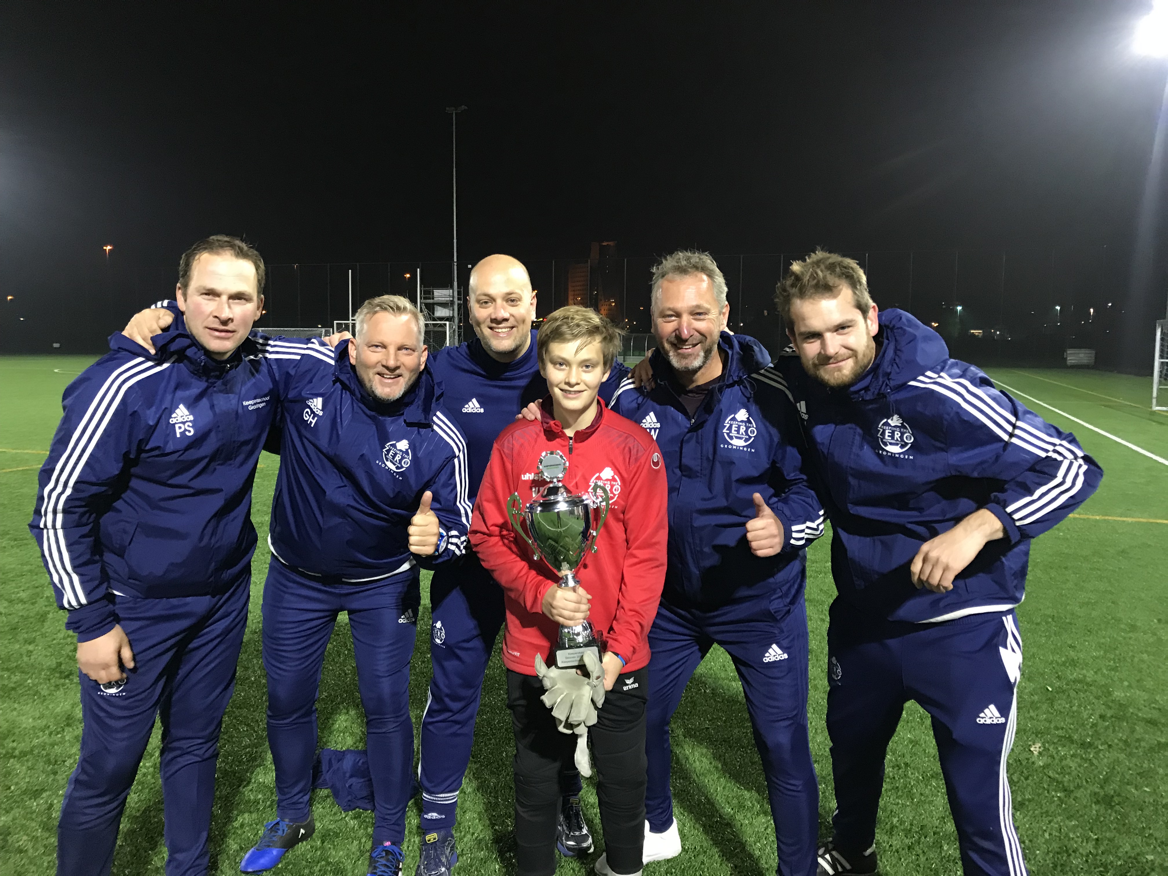 Bij de groepen van 6 uur was het de enorm leergierige Kjell Mul die met de beker onder zijn arm naar huis ging. Kjell speelt zijn wedstrijden voor vv Actief. De 14 jarige Kjell werkt al twee jaar hard aan zijn ontwikkeling. Steeds met de juiste houding en instelling op het veld en nagenoeg geen enkele training missend hebben we Kjell zien groeien. Dat de groeispurt in lengte nog moet komen is een kwestie van tijd. Kjell is een laatbloeier want is geboren in november. Dat maakt het voor een keeper lastig, als je nog niet zo groot bent. Toch blijft Kjell volharden in zijn missie om beter te worden. Beter worden is een proces wat je samen doormaakt. Samen werken aan je ontwikkelingspunten. En ook daar zien we dat Kjell enorme sprongen maakt. Gretig maar rustig als hij is kiest hij zijn pad.