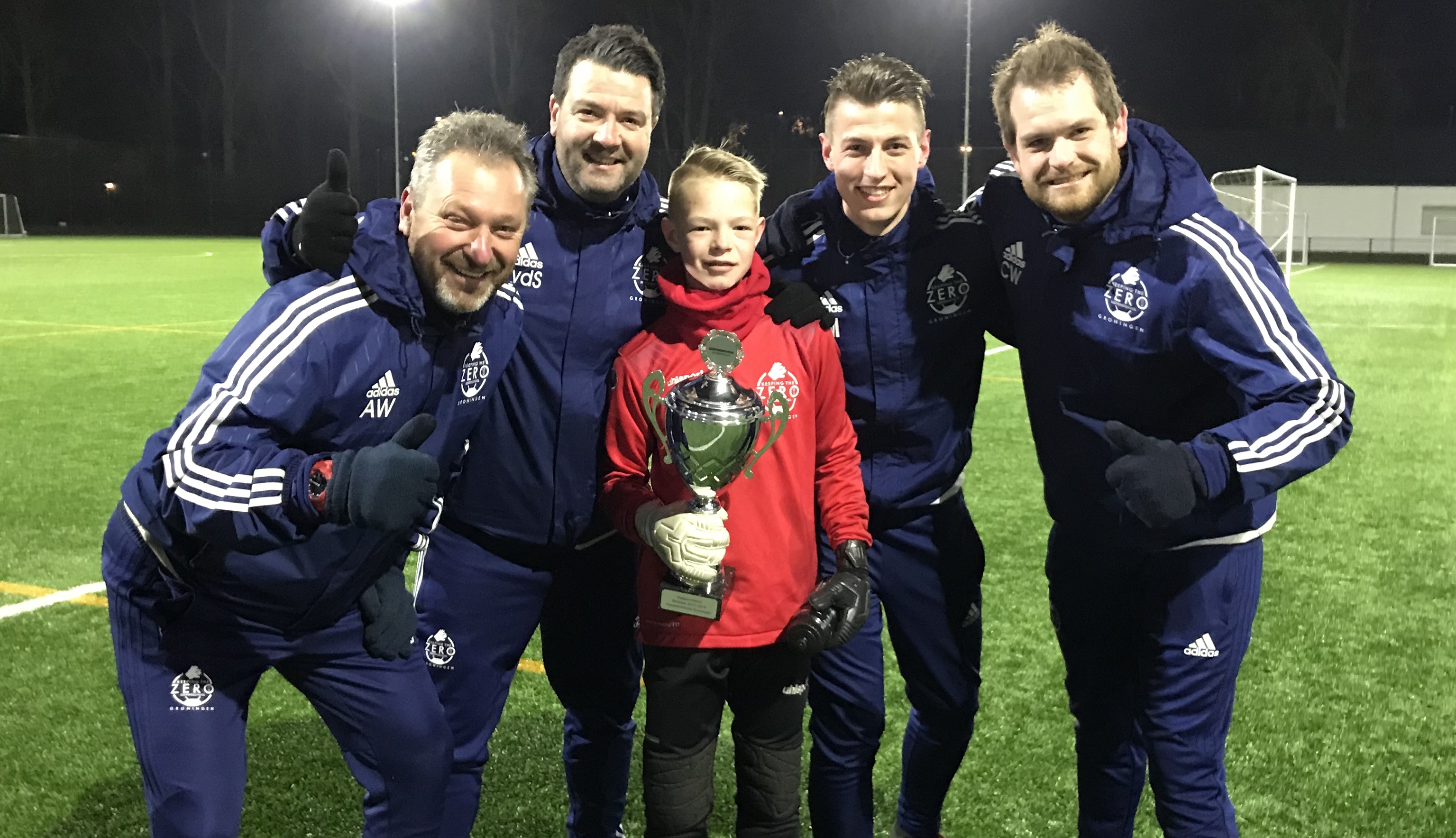 Bij de keepers van groep 2 was het wederom Sven van den Berg die de bokaal mee naar huis nam. Sven, geboren in 2006, laat er geen gras over groeien. Met de instelling als een prof laat Sven, spelend voor HFC’15, een groeicurve zien in zijn prestaties op het veld waar we ook wel trots op zijn. Gedreven als hij is maakt hij wekelijks zijn huiswerk, en juist dat onderdeel zorgt ervoor dat je stappen kunt blijven maken. Zelfreflectie is essentieel om jezelf te kunnen blijven ontwikkelen. Je zit tenslotte aan het stuur van je eigen ontwikkeling. Sven pakte de beker voor de tweede keer dit seizoen nadat hij hem in oktober ook al had bemachtigd.