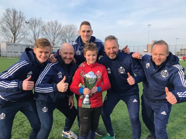 Bij de keepers die op vrijdag om 17.00 uur trainen was het de bij GVAV Rapiditas keepende Joost Volmer die met een grote glimlach naar huis ging. Dat doet hij natuurlijk altijd, want trainen is altijd leuk en leerzaam. Vandaag werd de lach nog groter, met trots kon hij de wisselbokaal in ontvangst nemen van de trainers. In september 2016 zette de inmiddels 11 jarige Joost zijn eerste stappen op Corponello om zich aan te sluiten bij het talententeam. Nadat hij een keepersdag had meegedaan en ook nog eens een proeftraining werd zijn honger om beter te worden alleen maar groter. We genieten van Joost, rustig als hij is gaat hij vol gas voor iedere bal die bij hem in de buurt komt om een tegendoelpunt te voorkomen. Afgelopen week werd hij met zijn team nog winnaar van een tournooi van de FC Groningen voetbalschool. Winnen doe je samen, doelpunten voorkomen doe je ook samen.