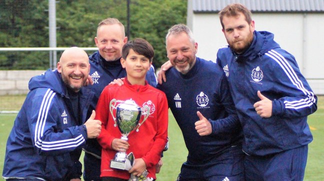 Bij de keepers van de groepen 2 ging Kevin van Dam (geboren in 2001) er met de beker vandoor. Kevin speelt zijn wedstrijden voor Poolster. Je bent keeper voor het leven zoals Gaby Hemsens (op de foto links van Kevin) onlangs zei in een interview in de krant. Soms zit het ook nog in de familie. Want de vader van Kevin (Jacob van Dam), was ook een verdienstelijk keeper. Kevin neemt het stokje gretig over, die in oktober 2016 lid werd van het keeperstalenten team. Rustig maar gretig werkt Kevin aan zijn eigen proces. Vertrouwen is daarbij het toverwoord. Als je in jezelf gelooft gaan anderen dat ook doen en ga je beter en beter keepen. Het proces die Kevin doormaakt is dan ook een mooi proces om onderdeel van uit te mogen maken. Het zijn stappen die de keepers nooit meer vergeten. En ook dat is iets waar we trots op zijn.