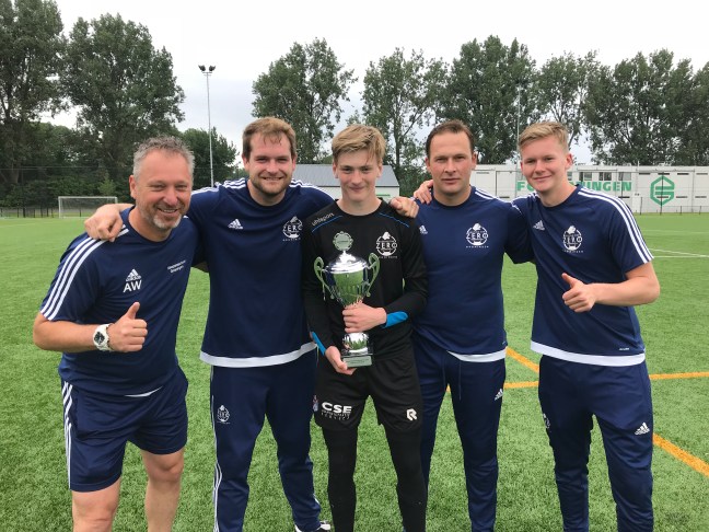 Tijdens de vrijdag groepen van 17 uur ging Bryan Arends van vv Peize met de gloednieuwe wisselbokaal naar huis. Bryan, geboren in 2008, zien we inmiddels iets meer dan een jaar op Corpus den Hoorn verschijnen. In mei 2017 kwam hij voor het eerst met ons meetrainen. De goedlachse en altijd serieus trainende Bryan is inmiddels niet meer weg te denken uit het keepers talenten team. Niet voor niets maakt hij dan ook steeds vaker de juiste keuzes in zijn keepershandelingen. Met aandacht, focus en lef laat hij zien waarom hij bij ons traint. Hij wil zich ontwikkelen.