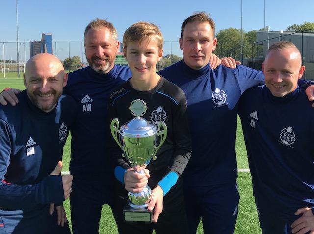 Thijmen NieborgBij de keepers die in de tweede groep starten om 10.30 uur was het Thome Verpaalen van vv Helpman die de wisselbokaal mee naar huis kon nemen. Thome kennen we al wat langer. Tijdens het keeperskamp van 2017 maakten we voor het eerst kennis met hem. Het talent en de wil om te leren viel ons gelijk op, naast zijn lengte natuurlijk. Want hij mag er zijn. Menig spits zal denken of het wel klopt dat hij in het team mag spelen waar hij in speelt. Thome besloot kort na de zomer van 2017 zijn ontwikkeling te willen versnellen, dus melde hij zich bij de andere keepers van Keeping ten Zero en zien we hem wekelijks op onze trainingen. De 13 jarige (!) Thome is duidelijk toe aan een nieuwe stap in zijn voetbalomgeving.