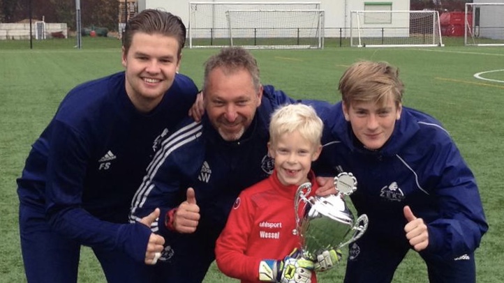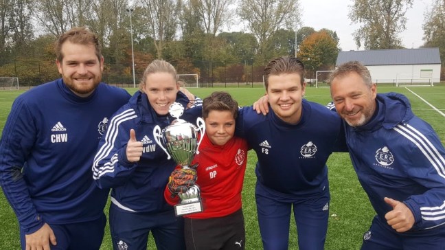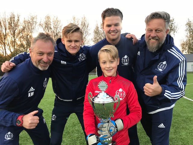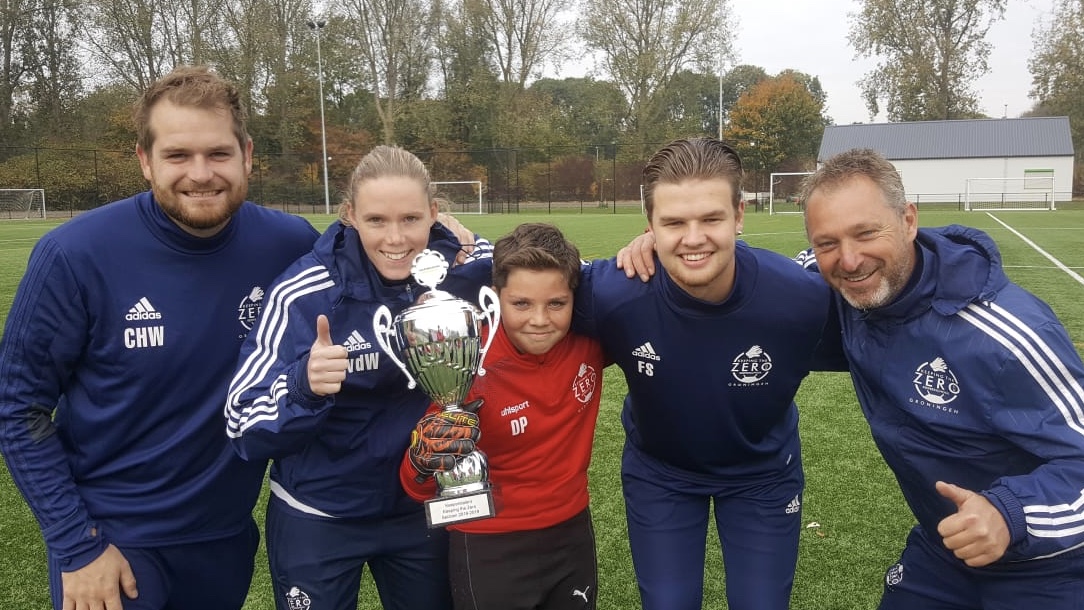 Jesse WubsBij de zondag groepen was het Wessel Renkema (2011) die de beker vol trots mee de auto in nam. Wessel speelt zijn wedstrijden bij Haulerwijk. Samen met zijn clubgenoot Mart Wijma zien we ze iedere week op de grasmat om beter te worden. Mooi is het dan ook dat dat steeds serieuzer gaat, wat al bij de warming up begint. Leren trappen, leren tegenhouden, leren vasthouden, snel leren bewegen. Het keepen is eigenlijk best moeilijk, maar alles is te leren. En Wessel laat steeds beter zien waarom hij traint.