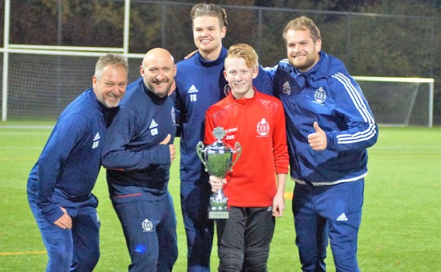 Bij de keepers groepen van vrijdag 17 uur was het de bij GVAV Rapiditas keepende Finn Westerhuis die de beker mee naar huis kon nemen. Daarmee bleef de beker in de “stad”. De in 2008 geboren Finn zien we al sinds oktober 2015 wekelijks op het veld. Daarmee onderschrijft Finn zijn liefde voor het keepen. In de afgelopen drie jaar hebben we Finn niet alleen een stuk groter zien worden, ook staat er steeds meer een keeper in het veld die weet wat hij wil en vooral hoe hij het wil. Ballen tegenhouden. Ze veel mogelijk. Dat gaat gepaard met veel oefenen, fouten maken, opnieuw proberen en dan beter worden. Mooi om te zien dat Finn niet alleen in zijn lengte groeit maar ook als keeper.