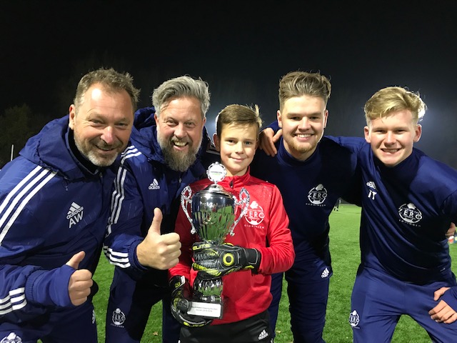 Tijdens de vrijdagtraining bij de groepen van 17 uur was het de bij GRC Groningen keepende Marnix Clermonts die de beker gretig mee naar huis kon nemen. Bijna nog gretiger als hij een bal verovert pakte hij de bokaal met beide handen aan. Marnix, geboren in 2008, kennen we al wat langer. In 2015 maakt hij ook al onderdeel uit van het talententeam. Nadat hij in 2016 besloot zich op andere dingen te richten en nog niet echt wist of hij keeper wilde worden, ging het voor de zomer van dit jaar toch weer kriebelen. Hij wilde vol voor het keepen gaan en zich optimaal ontwikkelen. Sindsdien zien we hem weer wekelijks op het veld. Natuurlijk is Marnix enorm gegroeid in lengte, maar ook in zijn persoonlijkheid. Steeds beter kan hij inschatten welke keepershandeling hij moet uitvoeren op welk moment en maakt daarbij steeds betere keuzes. Plezier en ontwikkeling gaan dan hand in hand. Het plezier straalt er dan ook van af.