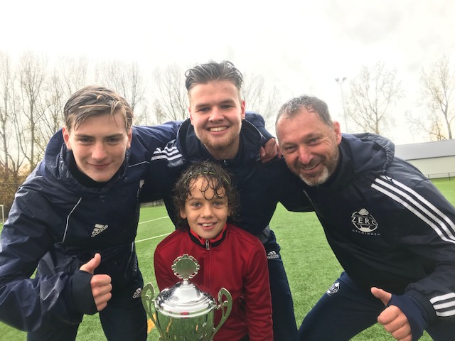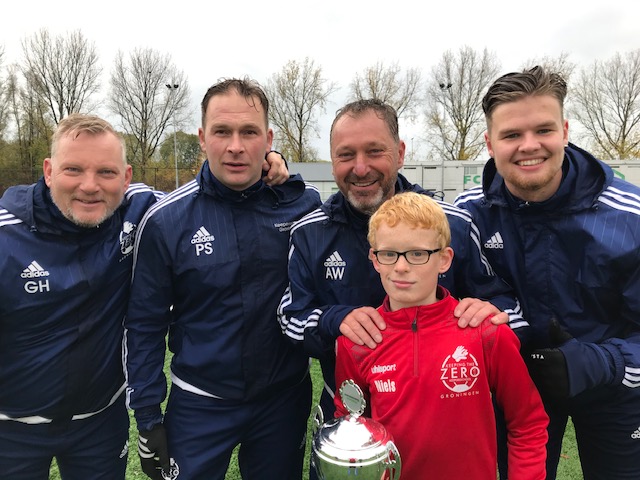 Bij de keepersgroepen van 10.30 uur was het Niels Jonker, spelend bij Lewenborg, die er met de beker vandoor ging. Niels kennen we al wat langer. Hij had al een aantal keren met keepersdagen meegedaan, en zo besloot hij in de zomer van 2017 dat het tijd was om vol voor het keepen te gaan. Beter worden. En dat hij als sinds zijn 4e keeper is onderstreept zijn passie voor de bal en het voorkomen van doelpunten. Niels, geboren in 2007, deed ook al met het keeperskamp mee in de zomervakantie van dit jaar. Volgend jaar is er overigens weer een keeperskamp in de laatste week van de zomervakantie. Niels zien we grote stappen maken, zijn focus en concentratie wordt steeds beter waardoor hij ook steeds beter in staat is de felbegeerde ZERO te houden. Niels laat dan ook zien dat je met passie je ontwikkeling kunt versnellen. Echte keepers gaan altijd door met hun passie. Dat laat Niels dan ook overduidelijk zien.