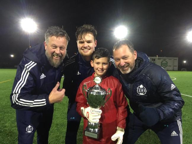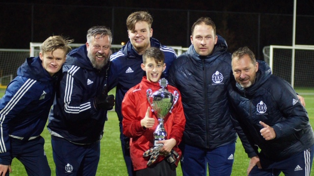 Bij de tweede trainingsgroepen van vrijdag 7 december was het weer droger, al viel er af en toe nog een klein beetje regen. Tygo Vellinga, spelend bij vv Winsum, ging er met de wisselbeker vandoor. Tygo, geboren in 2006, zagen we voor het eerst in december 2016. Alweer twee jaar geleden. De tijd gaat snel. Tygo hebben we zien uitgroeien tot een zelfbewuste keeper die weet welke keuzes hij op welke momenten moet maken om de ballen uit zijn doel te kunnen houden. Met steeds meer zelfvertrouwen staat Tygo dan ook zijn mannetje in het veld. De lach op zijn gezicht met de beker en trainers zegt genoeg over zijn plezier.