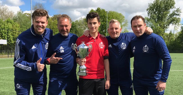 Bij de tweede trainingsgroepen van zondag 12 mei (het was ook nog eens moederdag), was het ook weer genieten voor de keepers. De zon scheen lekker over het veld wat het trainen ook altijd weer lekker maakt. De 16 jarige Teide Kruize nam de beker verdient mee naar huis. Teide speelt zijn wedstrijden voor vv Gorecht uit Haren. Keepers die in het eerste halfjaar zijn geboren hebben altijd een voorsprong op de keepers die later zijn geboren. Trainers kiezen immers meestal voor keepers die wat groter zijn en kijken minder naar het talent. Teide is eind oktober 2002 geboren wat hem op voorhand al op achterstand zette. Teide is echter het type dat zichzelf constant wil verbeteren, inmiddels laat hij dan ook zien dat het “geboortemaand effect” kan worden vergeten. Hij leert snel, past zich goed aan in iedere situatie en schat steeds beter in welke handeling nodig is op welk moment. Teide zien we overigens al sinds december 2016 op de trainingen. Mooi hoe keepers eigenlijk levenslang bij ons trainen en zich continue willen verbeteren.