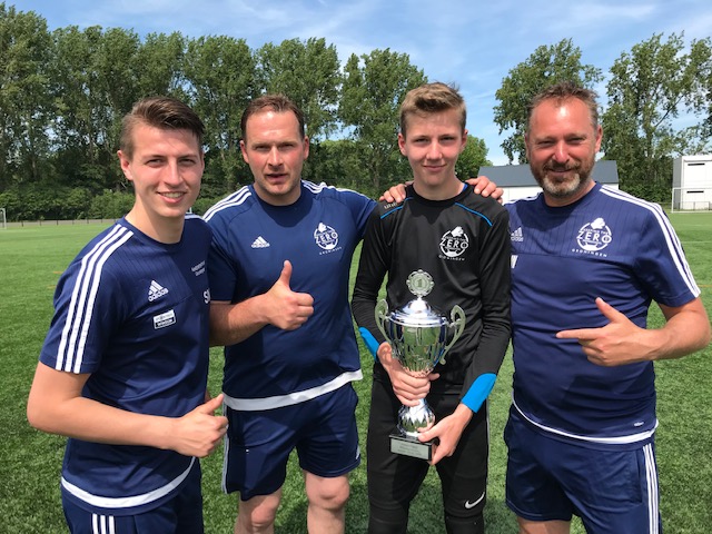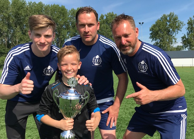 Bij de eerste keepersgroepen was het de bij FC Assen keepende Evan van der Duin die de beker vol enthousiasme mee naar huis nam. Evan, van de lichting 2008 zien we sinds juni 2018, doet wat hij moet doen als hij op de trainingen is. Grappen maken, luisteren, opletten, fouten maken, en van daaruit steeds maar weer beter worden. Het is heerlijk om met de leergierige Evan te mogen werken aan zijn ontwikkeling. Als het even niet lukt is er geen man over boord. Fietsen hebben we ook geleerd, net als praten, lopen, zwemmen en ga zo maar door. Zo kun je ook een steeds betere keeper worden. Als je dat maar echt wilt. Je gaat niet trainen om “te trainen”. Je gaat trainen omdat je beter wilt worden. Evan is een van deze keepers, beter worden is zijn motto. Dat de beker nu weer bij Evan belandt is dan ook een mooie stimulans om zich nog verder te ontwikkelen.De lach van Evan zegt dan ook genoeg.