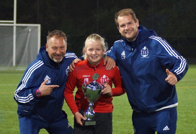 De 13 jarige Fiene zag we voor het eerst tijdens een training in oktober 2017. Precies twee jaar later heeft Fiene enorme stappen gemaakt waar ze met recht trots op mag zijn. Zo speelt ze al wedstrijden bij SC Heerenveen, en is ze uitgenodigd voor selectie trainingen van de KNVB voor het Onder 14 team. Allemaal bevestigingen dat ze enorm goed bezig is momenteel en dat haar ambitie verder reikt dan waar ze momenteel staat. Ze wil gewoon de beste worden. De Ajax liefhebber bewonderd dan ook de stijl van Andre Onana (keeper Ajax). Geen moment laat ze onbenut om te werken aan de punten die beter kunnen, en de andere dingen te verfijnen. Want het beter worden houdt nooit op. De beker zal een mooie plek krijgen in huize Nieuwendijk de komende week.