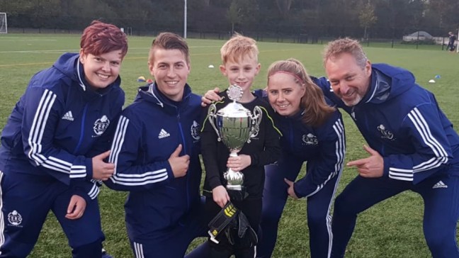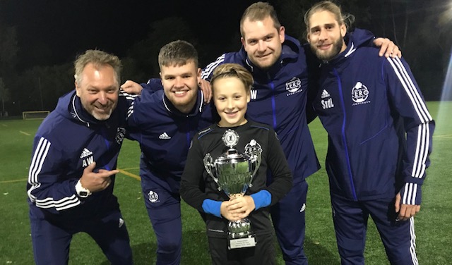 De beker werd door de 11 jarige Finn Westerhuis mee naar huis genomen. We zien Finn al sinds november 2015, dat is alweer 4 jaar, iedere vrijdag op het veld. Finn is uit het juiste hout gesneden. Het is dan ook niet voor niets dat hij al een groep hoger kan trainen, gewoon omdat we zijn omgeving zo willen aanpassen zodat hij zich optimaal kan ontwikkelen. Dat is overigens een grote stap. De ballen gaan sneller en hoger en de keepers waar hij mee traint zijn sterker en groter. Daar kan hij zich dan ook mooi aan optrekken. Finn is een liefhebber, altijd gesteund door zijn ouders die er iedere training zijn om zijn verrichtingen op het veld weer te bekijken. Finn speelt overigens bij GVAV Rapiditas. Dat het soms goed gaat en dan soms weer iets minder goed of juist helemaal niet is helemaal niet erg. Het gaat om het proces, en daar maakt Finn stappen in.