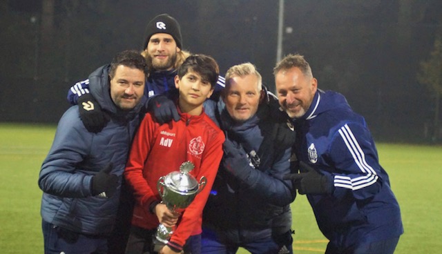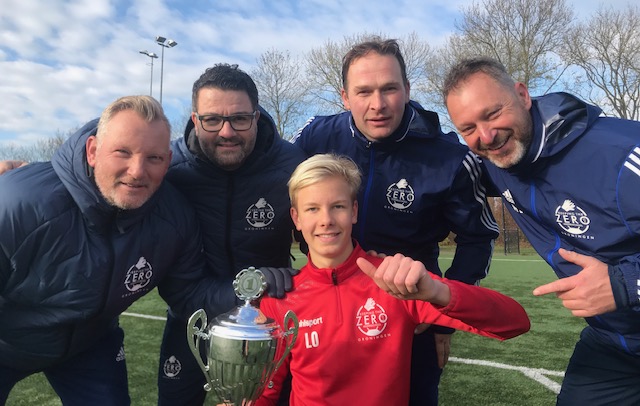 Bij de tweede trainingsgroepen van zondag 10 november was het de bij GRC Groningen keepende Leon Oldersma die de beker mee naar huis kon nemen. Leon is er al sinds onze eerste training in 2014. Inmiddels zijn we ruim 5 jaar verder is de toenmalige 9 jarige knaap inmiddels een 14 jarige lange vent geworden. We genieten van keepers die graag beter willen worden en geloven in zichzelf. Leon laat zien dat je altijd de focus moet houden op je eigen ontwikkeling. Dat gaat nl altijd met ups en downs. Als je niet opgeeft en gewoon je ding blijft doen dan komt de rest vanzelf. Je groei zit je als keeper wel eens in de weg. Je wordt slungelig en dan lukt het even niet meer. Bij Leon lukt het keepen weer, want zijn ontwikkeling zit weer een opwaartse lijn. Dat is waar het om draait bij keepers. Altijd geloof in jezelf houden.
