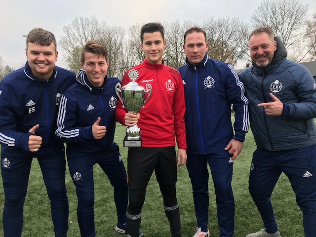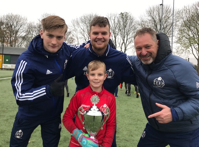 Bij de zondag trainingen van 24 november was het fris. Dat mocht de pret uiteraard niet drukken. Er werd weer hard gewerkt door de keepers om zo weer een stap in hun ontwikkeling te kunnen maken. Goed trainen betekend op den duur ook dat je goede wedstrijden gaat spelen. Bij de eerste keepersgroepen was het de bij Harkema Opende keepende Demian Hamstra die de beker mee naar huis kon nemen. Sinds maart van dit jaar zien we de in Surhuisterveen woonachtige Demian iedere zondag op het veld. Als je vragen stelt merk je al snel dat Demian het wel snapt, hij weet precies wanneer je wat moet doen. De uitvoering wordt dan ook steeds beter. De in 2010 geboren Demian zien we niet alleen stappen maken in de ontwikkeling van zijn keepershandelingen, maar ook in zijn aandacht en focus. Juist die laatste twee zijn enorm belangrijk. Een keeper moet tenslotte de hele wedstrijd heel erg goed opletten.