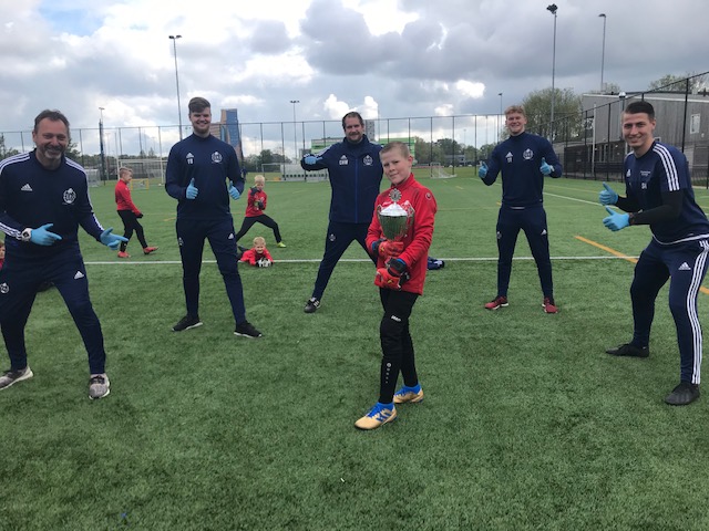 De eerste beker ging vandaag naar Mark Woortmeijer. De in 2008 geboren Mark speelt zijn wedstrijden bij TLC uit Leek. Sinds mei 2017 zien we hem op onze wekelijkse trainingen. Mark is het type harde werker. Wat legt deze knaap een arbeid op de mat. Thuis oefent hij zich een ongeluk, en dat ging vandaag onverminderd door. Mark zit overigens ook bij de KNVB selectie onder 12 van de regio Noord Nederland (Groningen, Drenthe, Friesland).