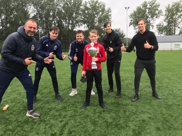 Op de vrijdag was de eerste trotse winnaar de bij Be Quick 1887 spelende Quinten van Veen er met de beker vandoor naar huis. De in 2010 geboren Quinten zine we sinds februari van dit jaar. Zijn vader was een begenadigd voetballer. Quinten kiest zijn eigen pad, en koos er voor om de held te kunnen worden en dus werd hij keeper. En dat gaat werkelijk fantastisch. Gedreven werkt hij iedere training om beter te kunnen worden. Keepersdagen zijn tevens aan hem besteed. Het keeperskamp in augustus laat hij ook niet aan zijn neus voorbijgaan, Quinten is dan ook een echte liefhebber.