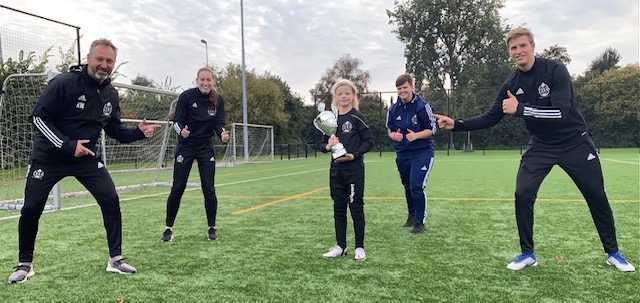 Bij de laatste groepen op de zondag was het de bij Heiligerlee keepende Sydney Gerritsma die de beker mee naar huis nam. Sydney, geboren in 2006, zien we sinds juli 2019 iedere zondag. En dat gaat zo goed dat ze stappen maakt. De stappen die ze zelf graag wil. Zo verander je wel eens van groep of omgeving. Dat is alleen maar goed. Simpelweg omdat je altijd intrinsiek gemotiveerd moet zijn en je moet kunnen omgaan met iedere situatie als keeper in het veld. Sydney laat zien dat ze een duidelijk doel heeft. Gericht werkt ze daarom aan haarzelf. En snapt ze heel erg goed wat er van haar gevraagd wordt.