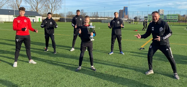 Bij de tweede trainingsgroepen op zondag 15 november was het de in 2004 geboren Sem Wildeboer die de beker mee naar huis in Assen kon nemen. Sem speelt bij Achilles 1894. Sem traint bij ons vanuit zijn intrinsieke motivatie om beter te worden. Die drive moet je dan vervolgens ook nog op de grasmat leggen. Dat doen Sem, en zijn ontwikkeling gaat vervolgens aan de loop. Wat een progressie maakt deze vent. Mooi om te zien dat de keepers zich in de verschillende groepen aan elkaar op kunnen en willen trekken.