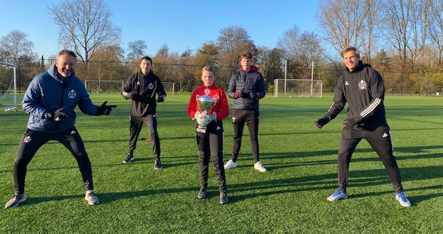 Bij de zondag trainingen van 29 november ging de beker mee naar Grootegast. Dit keer was het de in 2008 geboren Leonie Terpstra die de beker trots en met een grote glimlach in ontvangst nam. Inmiddels zien we haar al 2,5 jaar iedere zondag tussen de andere talenten. Deze meid kan er wat van hoor. Ze let op, luistert goed, is voor de duvel niet bang en past toe wat ze hoort, ziet en krijgt aangereikt. Beter worden is een proces, ook dat laat Leonie zien. Toen ze binnenkwam wilde ze alleen maar heel graag maar was ze nog wat hoekig. Samen zijn we aan het werk gegaan. En zie wat er dan kan gebeuren. We zien een meid in de goal die de ballen met lef uit haar doel weet te houden.