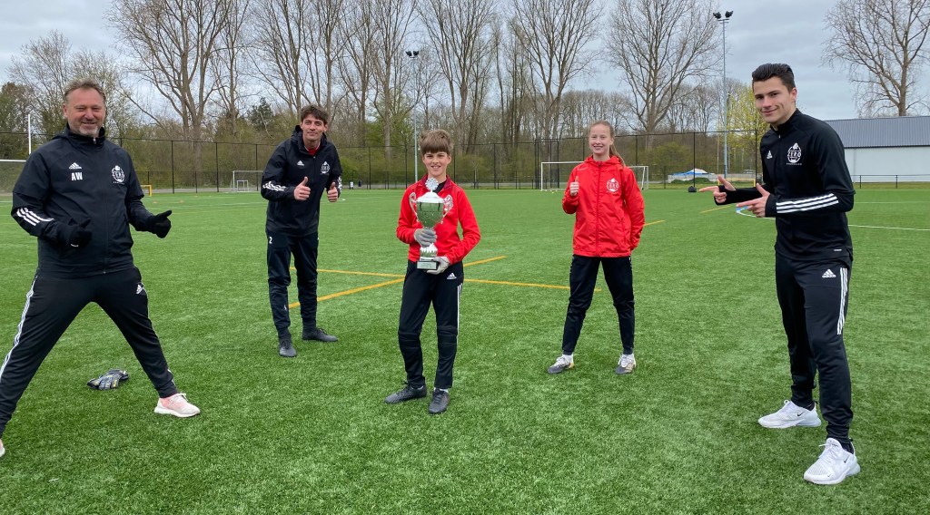Bij de tweede trainingsgroepen op vrijdag 23 april was het de bij Lycurgus spelende Sam Schouwenaars die de beker mee naar huis nam. Deze “lange” vent is nogal gegroeid. In alle opzichten. We zagen hem voor het eerst in juni 2015. De toen 9 jarige Sam is inmiddels bijna 15. Zo zijn we 6 jaar verder. Hebben we samen aan zijn ontwikkeling kunnen werken en is hij enorm gegroeid. Allereerst in zijn kwaliteit. Ten tweede in zijn lengte. Hij stijgt inmiddels boven de trainers uit.