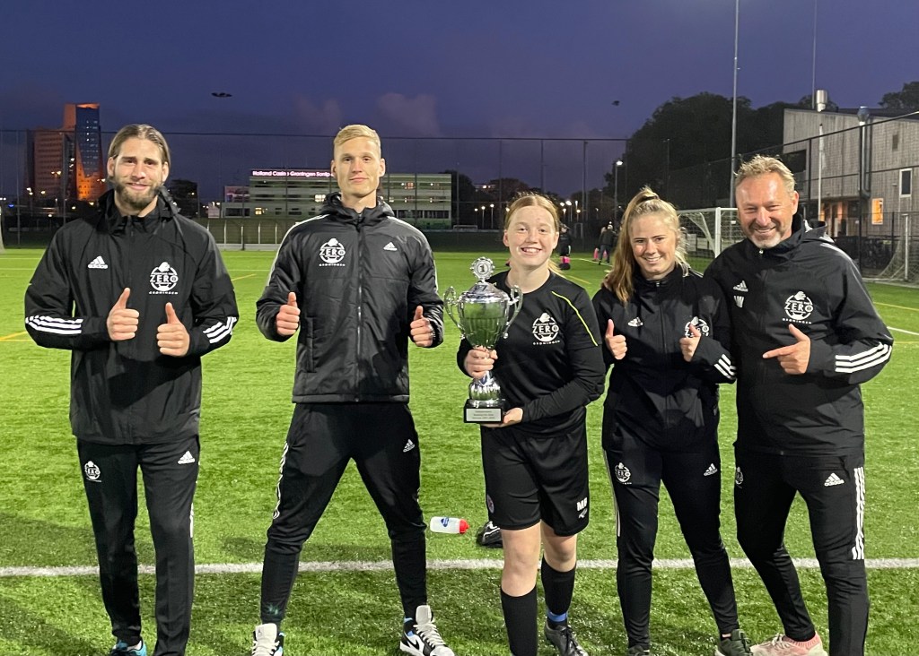 De beker ging uiteindelijk met Megan Brugge mee naar huis. Zo bleef de tweede beker van de avond in de “stad”. Megan speelt haar wedstrijden bij GVAV Rapiditas, daarnaast is ze in de race om opgenomen te worden in het KNVB Onder 14 team Noord Oost Nederland. Dat doet ze overigens samen met haar trainingsmaatjes Luna Spin (Veendam 1894) en Sianna Kuiken (St. Annaparochie).