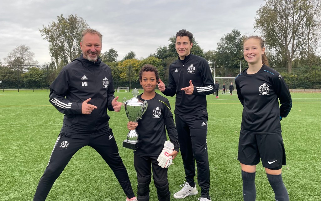 Bij de trainingen van zondag 10 oktober j.l. was dat niet anders. Er werd keihard gewerkt. De beker bij de eerste groepen ging mee naar Hoogezand met Bay Zeeman. Bay, geboren in 2011, speelt bij HS’88. We zien hem sinds augustus van dit jaar, en wat een fijne vent is dit. Daarvoor zagen we hem bij een keepersdag. Hij doet wat hij moet doen, week in week uit. Rustig doet hij zijn werk. Omdat hij graag beter wil worden. En dat is best moeilijk. Je moet goed opletten en de uitvoering moet meestal ook nog eens heel erg snel. Maar Bay maakt mooie stappen in de goede richting. Dus wordt hij een betere keeper. Dat proces gaat nog veel verder. En daar gaan we samen heel erg veel voor doen.