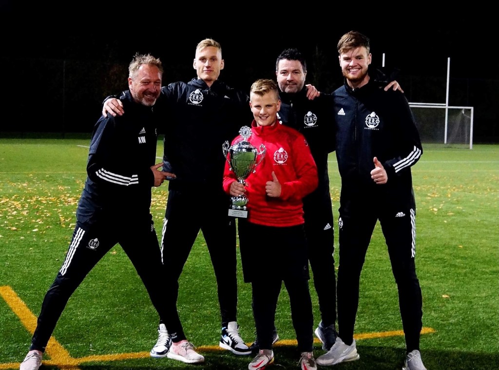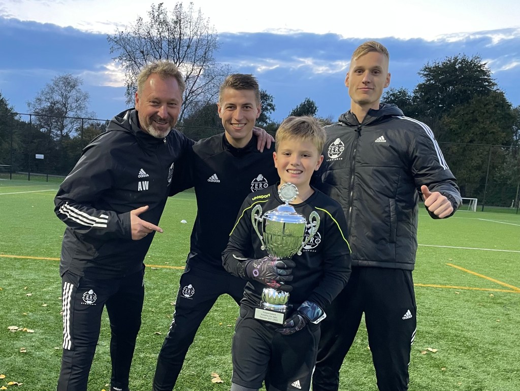 De eerste beker op de trainingen van vrijdag 29 oktober ging naar de in 2010 geboren Joost Jan Speelman. Hij speelt zijn wedstrijden bij VEV67 uit Leek. Steevast is hij iedere vrijdag aanwezig samen met zijn vriend en clubgenoot Siem Landkroon. Siem is overigens een jaartje jonger. We zien Joost Jan al bijna 2 jaar iedere week. En wat een plezier spat er af. Joost is ruw. Dat wil zeggen dat hij heel graag beter wil worden maar dat hij nog wat grof is. Hij is ook nog eens erg groot. Stap voor stap werken we aan het proces van beter worden. Hij is steeds beter in staat de bal met de juiste snelheid te verplaatsen en ook nog eens goed in positie te komen bij spelverplaatsing. Zijn handen zijn zacht en zo pakt hij steeds beter ballen vast. Het is dan ook heel erg fijn om met hem te mogen werken. Zijn aandacht wordt ook steeds beter en beter.