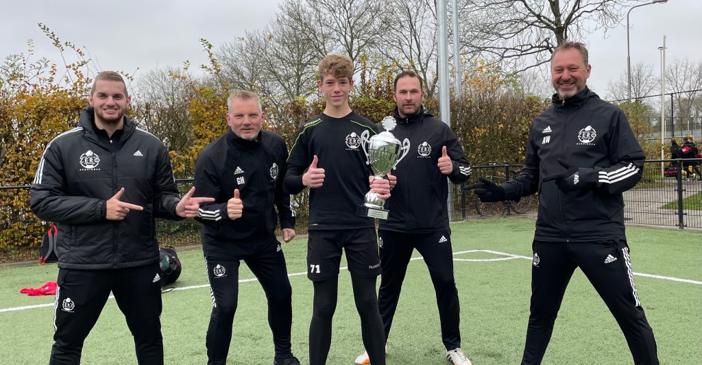 Op zondag 14 november j.l. was het plezier ook weer enorm. Het was fris, maar dat mocht de pret niet bederven. Er werd weer hard gewerkt om iedere bal te kunnen pareren en vast te houden, De eerste beker ging mee met de bij Helpman spelende Joshua Yazgonul. De in 2011 geboren Joshua traint altijd met plezier. Beter worden is wat hij ook het liefst wil. Dat gaat met horten en stoten. Zijn lengte is een groot voordeel als keeper. En die benut hij zoals we het graag zien. Met elf pakt hij iedere bal, zelfs steeds beter klemvast. Dat zijn ontwikkeling eigenlijk pas is begonnen maakt zijn toekomst alleen maar mooier.