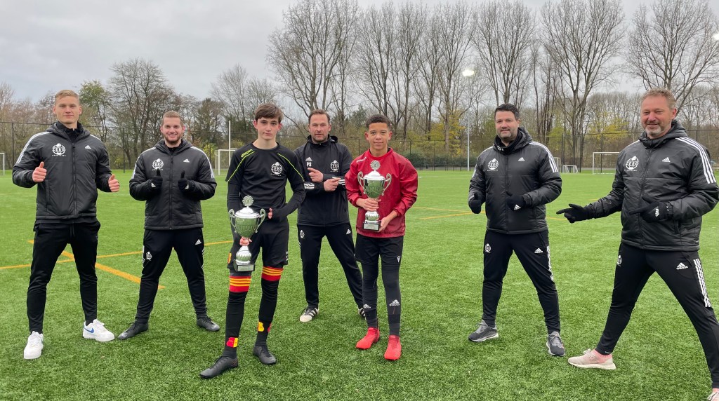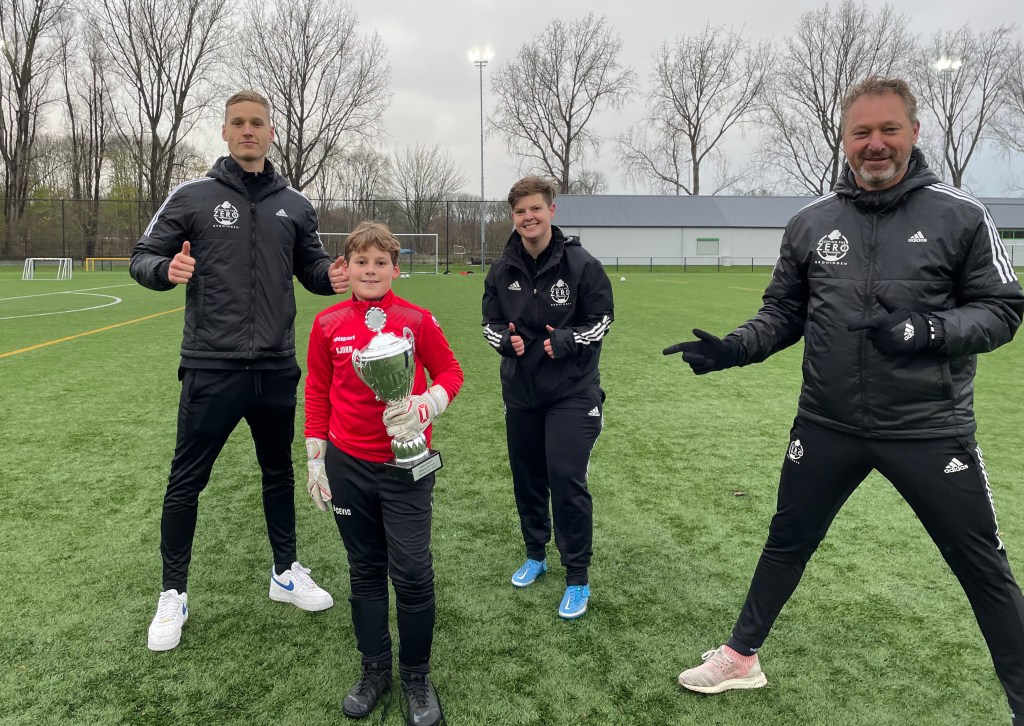 De twee laatste bekers op zondag 5 december werden mee naar huis genomen door Vasco Hilverda en Aaron Wanki. Een groot compliment voor beide doelmannen. Vasco is een tijdje geblesseerd geweest maar maakte een hele sterke comeback op zijn eerste training. Aaron (2007)verdient altijd een compliment. Hij zeurt niet maar werkt. Werkt hard. Omdat hij snapt dat hard werken belangrijk is als je stappen wilt maken. Hij trekt zich op aan de mede keepers waar hij mee traint. Aaron speelt bij HFC15. Dat Aaron de beker mee naar huis nam is een mooie bevestiging dat hij op de goede lijn zit in zijn ontwikkeling. Vasco (2006) speelt bij Be Quick 1887 in Groningen, The good old heeft een hele talentvolle keeper in huis met Vasco. Hij zal het dan ook ver gaan schoppen. Wat een kwaliteit legt hij iedere keer op het veld. Echt fantastisch om met zoveel talentvolle keepers iedere week op het veld te staan.