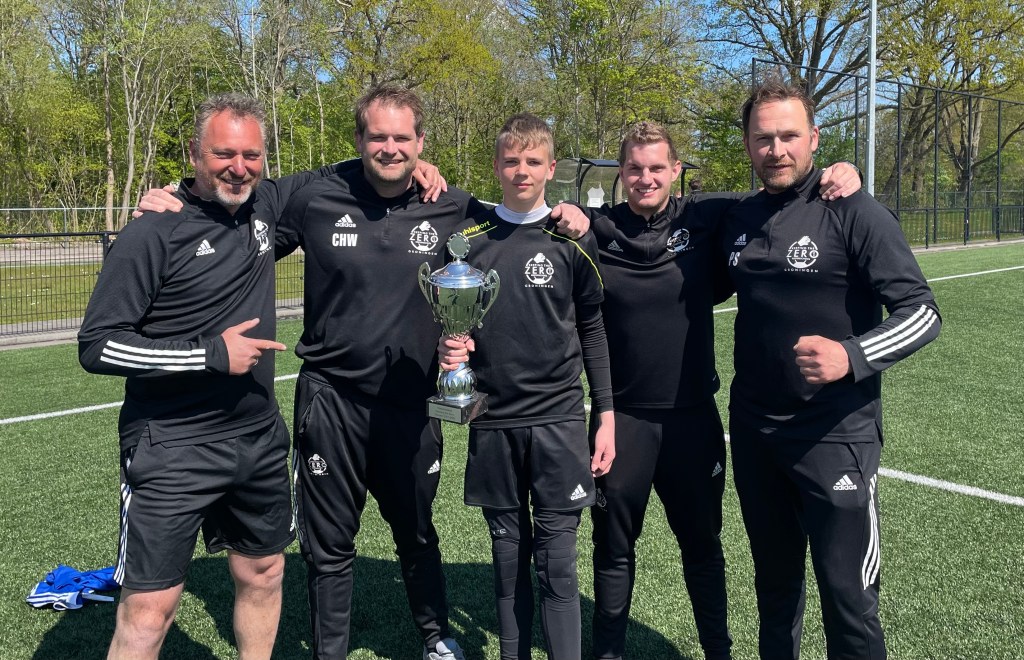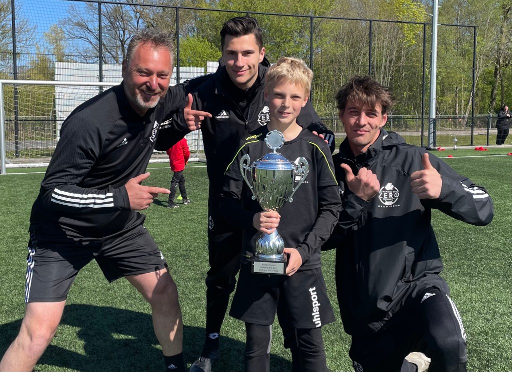 De laatste beker van zondag 24 april ging naar Emmen. Armin Rolfes (2008) nam de beker mee naar huis. Armin speelt bij DZOH. Zijn missie is de beste te worden. Rustig werkt hij samen met ons aan zijn proces van beter worden. Niet in de war raken als je in een team speelt die wat minder goed is. Armin kan een hoog niveau aan dat bewijst hij op iedere training omdat hij met oudere jongens traint. Dat gaat hem niet heel moeilijk af. En daar zit een mooi punt. Armin past zich razendsnel aan. Zijn omgeving geeft hem extra prikkels. Van Armin gaan we nog veel meer horen. De kwaliteit zien wij. Het is wachten tot anderen het ook zien.