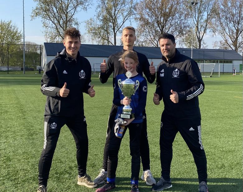 Bij de eerste trainingsgroepen op vrijdag 22 april ging de in Heerenveen wonende Yelka Stallmann (2009) er met de beker vandoor naar Friesland. Yelka kunnen we bestempelen als een groot talent. Iedere week doet ze haar stinkende best om weer wat beter te kunnen worden. Naast de prive trainingen die ze ook al bij ons volgt. Yelka werkt hard en rustig. En zo zien we het graag. De ontwikkeling van Yelka gaat maar door. Daar gaat ze dan ook de vruchten van plukken. We zijn echt benieuwd naar komend seizoen. Yelka speelt bij Heerenveense Boys.