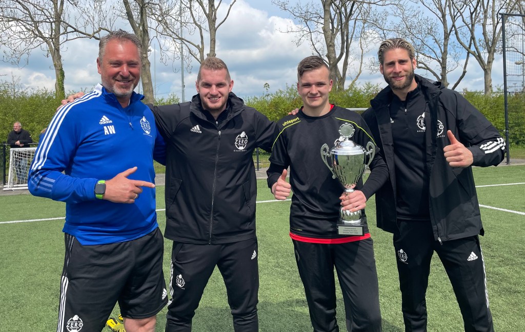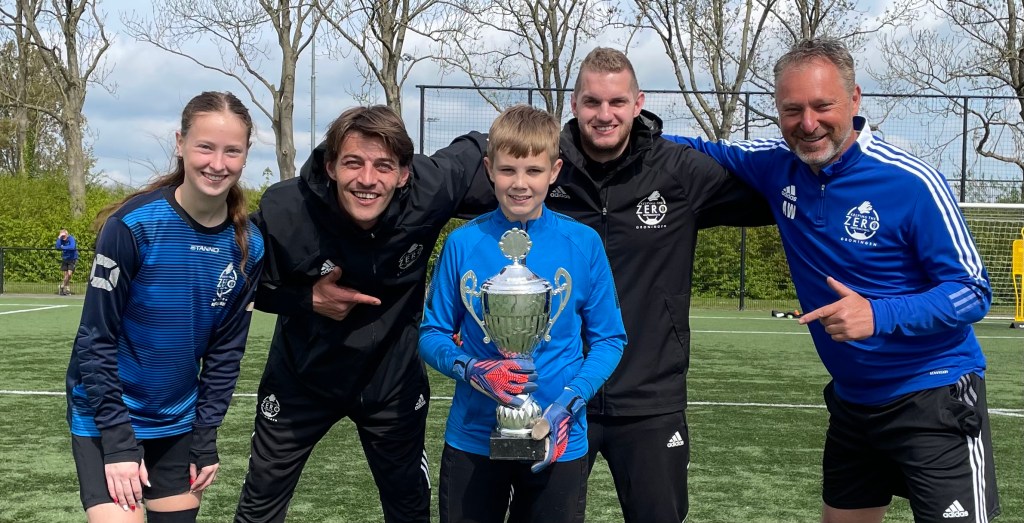 De laatste beker op zondag 1 mei ging naar Drenthe. De in Schoonebeek woonachtige Kjelld doet er alles aan om een betere keeper te worden. Iedere zondag zien we hem dan ook op Corpus den Hoorn. Wat een onverzettelijkheid legt hij aan de dag. Opgeven is geen optie. En dus werkt hij aan zijn ontwikkeling. Samen doen we hard ons best om iedere week weer een stapje vooruit te kunnen maken. We geven hem prikkels, die neemt hij feilloos op. Even wennen en dan gaat hij als een speer. Kjelld is geboren in 2006.