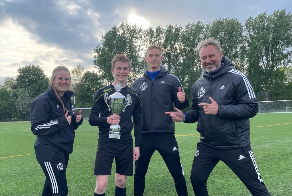 Op de vrijdagtraining van 13 mei was het weer smullen geblazen op het veld op sportpark Corpus den Hoorn in Groningen. De eerste beker ging naar de in Meerstad wonende Kyran Drommel. Dit in 2011 geboren talent speelt bij the Good Old. Be Quick 1887. Het type dat echt graag beter wil worden en alle tips die hij krijgt aangereikt razendsnel kan toepassen. Zo probeert hij de dingen en merkt hij dat het dan beter gaat. Zijn ontwikkeling gaat rustig verder. Zoals het hoort. Stap voor stap beter worden.