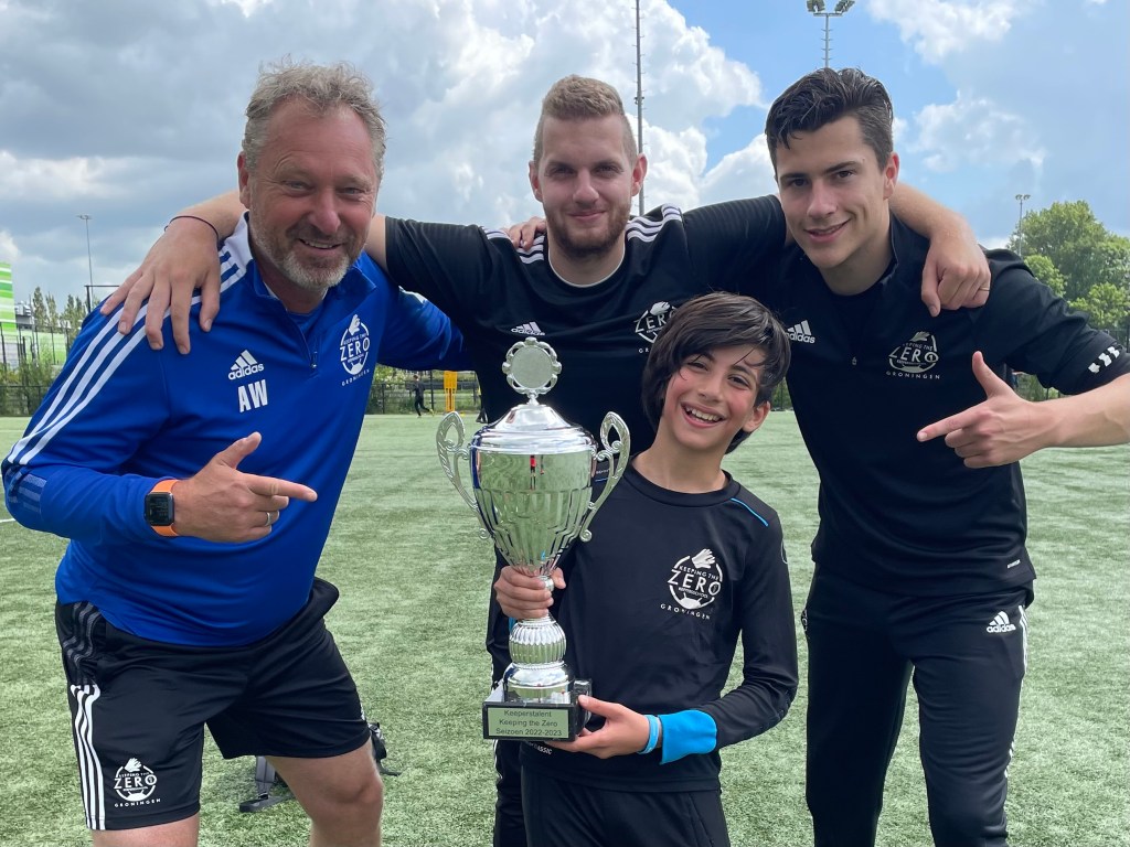 Bij de eerste training van 2022 – 2023 vlogen de vonken er weer vanaf. De bij WVV uit Winschoten keepende Amre Modagmesh ging met de beker terug naar huis. Deze in 2010 geboren keeper wordt echt beter in beter. Toen hij kwam bijna twee jaar geleden was het nog speels, maar deed hij zijn uiterste best. Ook als het even niet lukte. Nu plukt hij de vruchten van zijn doorzettingsvermogen. De ballen die hij pakt, de snelheid die hij heeft, de motoriek die hij heeft en de lach die hij op zijn gezicht heeft zijn de onderdelen waar we echt enorm blij van worden. Amre maakt de ontwikkeling als keeper door die je graag wilt doormaken. Wat heerlijk is het om met hem te mogen trainen.