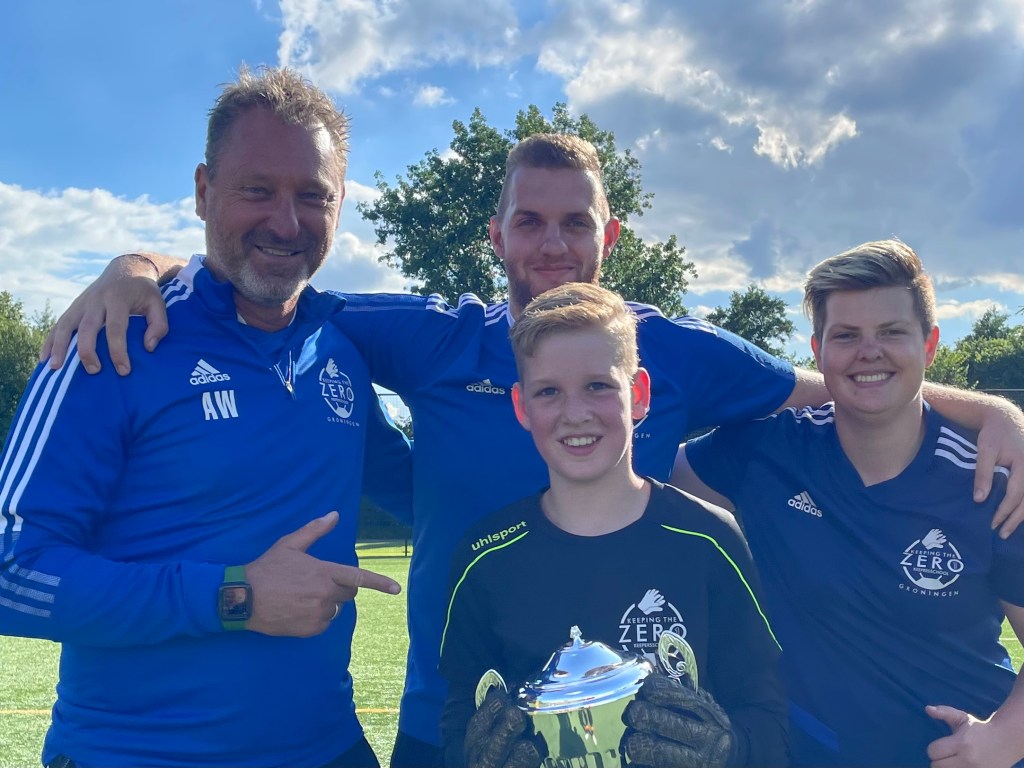 Thijs Prins ging met de beker aan de haal. Thijs, geboren in 2012, is een echte liefhebber. Zo hebben we hem het afgelopen jaar enorm zien groeien als keeper. Thijs speelt bij BATO uit Winschoten en maakt iedere week de rit naar Groningen om zich te kunnen ontwikkelen. Want hij wil gewoon de beste worden. En dat gaat hem dan ook echt heel erg goed af. Inmiddels heeft hij een dosis zelfvertrouwen die iedereen graag zou willen hebben, gewoon omdat hij weet wat hij kan. hij pakt ballen die je niet voor mogelijk houdt. Zijn focus en aandacht voor het voetbal zijn ook enorm gegroeid. Zijn ontwikkeling gaan we verder begeleiden.