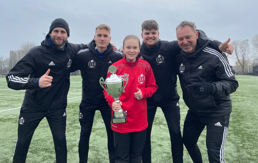 Op zondag 12 februari gingen twee dames met de beker aan de haal. Bij de eerste groepen was het de bij Scheemda keepende Maireen Nap die de beker mee naar huis kon nemen. Maireen laat er geen gras over groeien. Ze is bij ons om beter te worden. Niet meer en niet minder. En dat doet ze met verve. De gretigheid straalt dan ook van haar af. En dat slaat over op de andere keepers waar ze mee traint. Zo help je elkaar ook naar een hoger niveau. Deze in 2011 geboren keepster is erg leergierig. Dat is voor ons heel erg fijn.