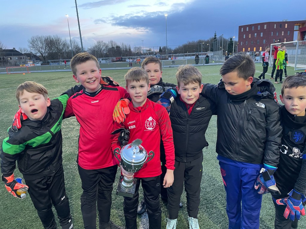 Op vrijdag 17 maart ging de bij Kloosterburen spelende Dex Vink (2013) er met de beker vandoor onder de arm. Man wat was hij trots. Hij kon in de auto op de weg terug naar huis nog steeds niet geloven dat hij de beker had gewonnen. Voor DEX is het een mooie beloning voor zijn inzet en ontwikkeling. Want beter worden doen we samen. De keeper, de keepers waar je mee traint en de trainer. Zo hebben we een mooie driehoek waar iedereen verantwoordelijkheid krijgt en ook neemt. Deze zullen we verder gaan ontwikkelen. En de zomertijd komt er aan. Ook dat is lekker.