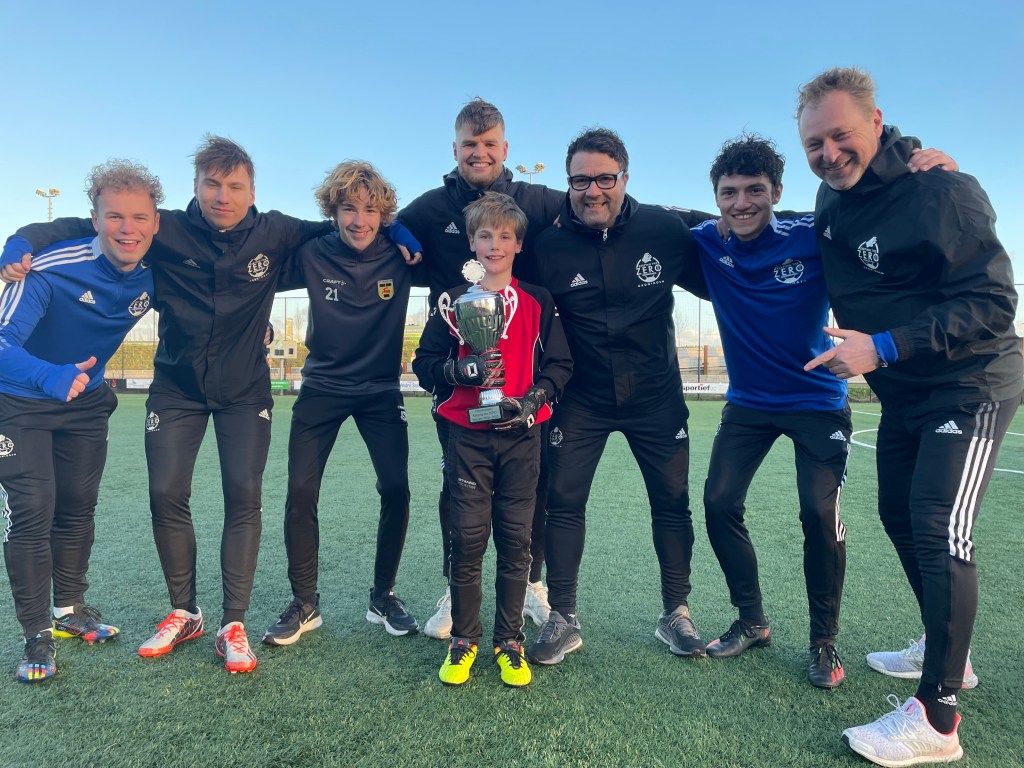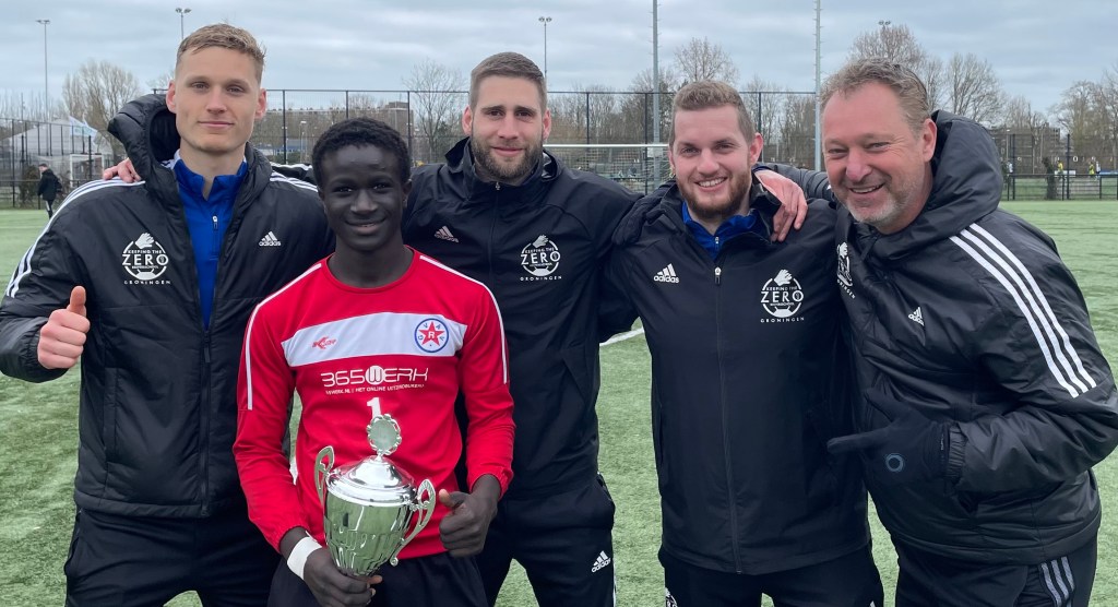 De tweede beker ging wederom naar de bij HZVV keepende Dylan Wesseling. Dit is een doelman zoals je ze graag op het veld hebt tijdens de training. Doet altijd zijn uiterste best en luistert goed naar de dingen die we hem meegeven tijdens de training. Dat beter worden uit jezelf moet komen snapt Dylan wel. Dat hij focus heeft is ook wel duidelijk. Uiteindelijk gaat het er om dat je de vertaalslag kunt maken van de training naar de wedstrijd. Maar ook andersom. Dylan laat zien dat hij echt graag beter wil worden. Niet voor niets is hij aangesloten bij het keepers talententeam van Keeping the Zero in Assen. Hij moet geprikkeld en uitgedaagd worden. En juist die dingen reiken we hem aan. Met een dosis plezier.