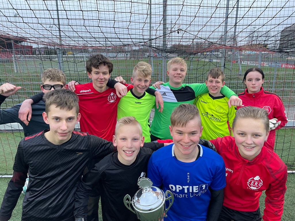 Op zondag 2 april waren er ook weer winnaars. Dat kon mooi samen deze keer. Het waren Rafaela Erenstein (Bedum) en Gijs Brinkman (Glimmen) die de bekers klemvast pakten. Enorm gedreven goalies. Met maat 1 doel. En dat is beter worden. En dat zien we dan ook gebeuren. Goed opletten, fouten maken en daarvan leren.
