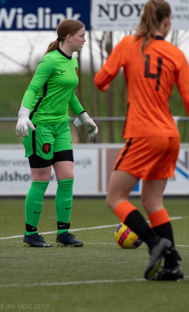 Zo zagen we haar iedere vrijdag met plezier op het veld. Vriendschappen ontstonden met andere keepers en keepsters. Zij aan zij trekken ze met elkaar op. Deze jonge doelvrouw deed wat nodig was om beter te kunnen worden. Hard werken, plezier hebben in wat je doet en goed luisteren naar de tips. Inmiddels zijn we ruim 4 jaar verder. En dan ontstaat er wat als je dit patroon volgt.